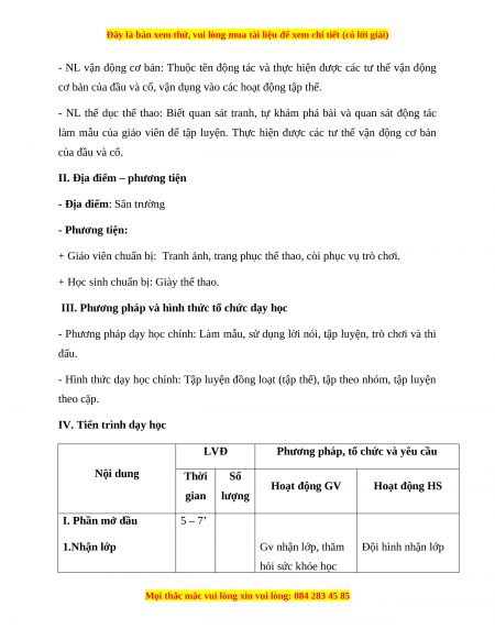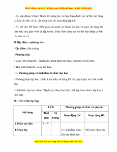 - Phương pháp dạy học chính: Làm mẫu, sử dụng lời nói, tập luyện, trò chơi và thi đấu.