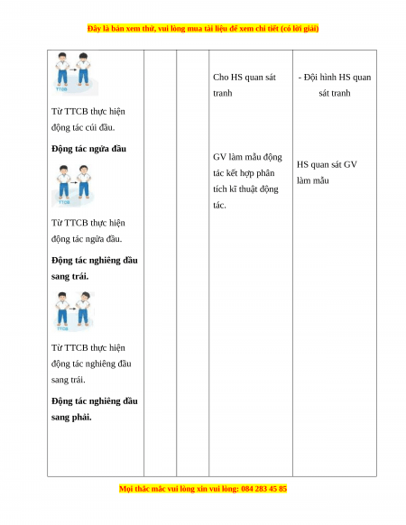 làm mẫu của giáo viên để tập luyện. Thực hiện được các tư thế vận động cơ bản của đầu và cổ.