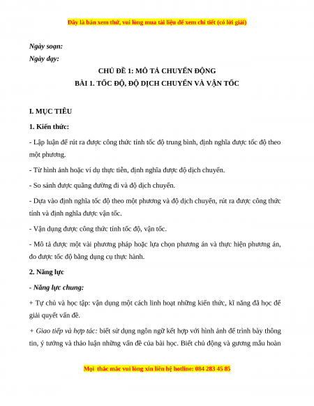 CHỦ ĐỀ 1: MÔ TẢ CHUYỂN ĐỘNG