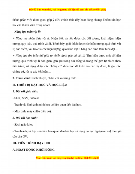 tượng, quy luật, quá trình vật lí. Trình bày, giải thích được các hiện tượng, quá trình vật