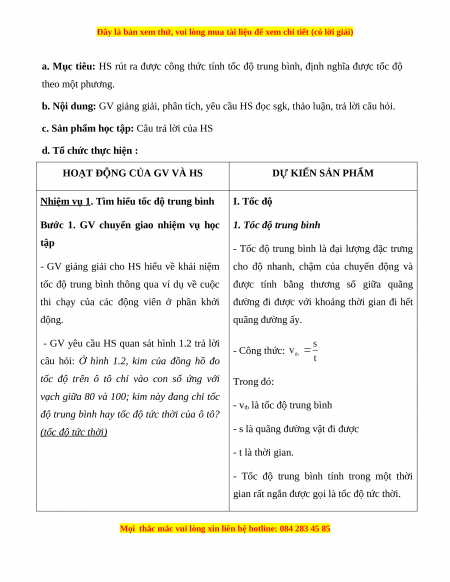 - Lập luận để rút ra được công thức tính tốc độ trung bình, định nghĩa được tốc độ theo một phương.