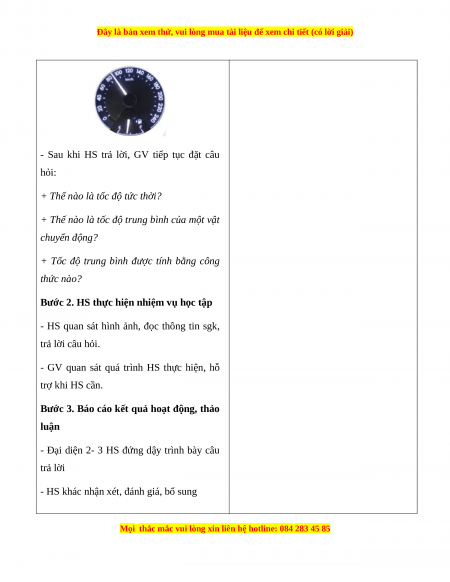 Giáo án Bài 1 Vật lí 10 Cánh diều (2024): Tốc độ, độ dịch chuyển và vận tốc