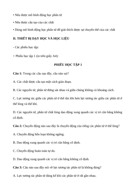 Câu 2: Chuyển động nào sau đây là chuyển động của riêng các phân tử ở thể lỏng?