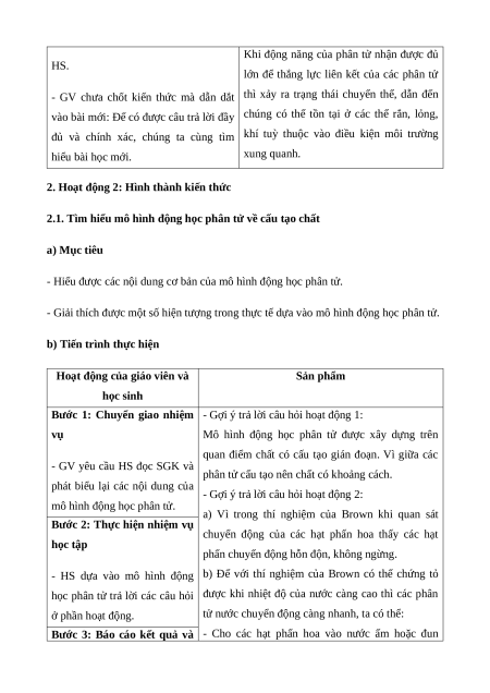 - GV yêu cầu HS trả lời câu hỏi ở phần biệt là phân tử. mở đầu.