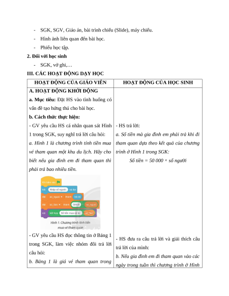 vé tham quan một khu du lịch. Hãy cho trình ở Hình 1 trong SGK: