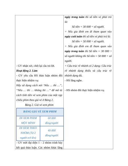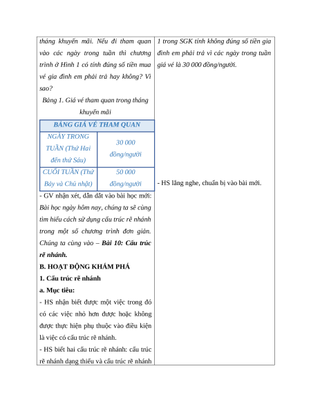 - HS biết hai cấu trúc rẽ nhánh: cấu trúc