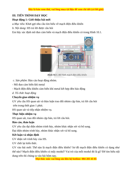 - Nhận thức công nghệ: vai trò của một số modul cảm biến trong mạch điện điều khiển đơn giản.