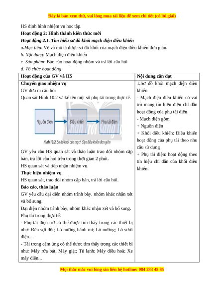 Hoạt động 2.1. Tìm hiểu sơ đồ khối mạch điện điều khiển
