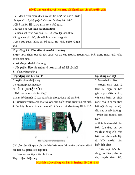 - Sử dụng công nghệ: Phân loại được một số modul cảm biến trong mạch điện điều khiển đơn giản.
