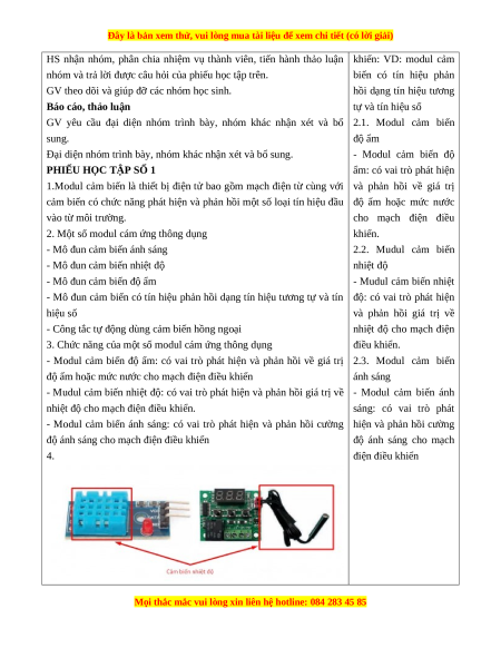 GV đưa ra phiếu học tập - Modul cảm biến là