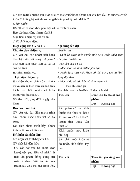 - Nhận thức công nghệ: Nhận biết được quy trình thiết kế móc chìa khóa.