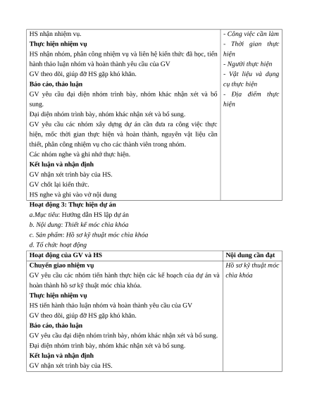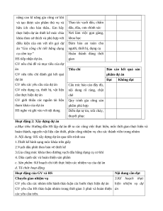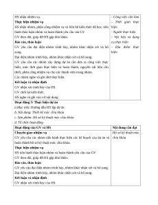 GV nêu dụng cụ, thiết bị, vật liệu nội dung rõ ràng, chặt cần thực hiện dự án chẽ
