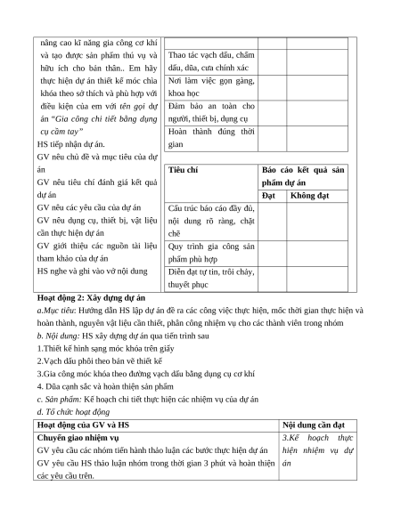 - Chăm chỉ: Có ý thức vận dụng kiến thức về gia công chi tiết bằng dụng cụ cầm tay để lập dự án.