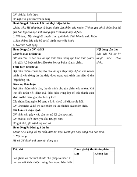 c. Sản phẩm: Báo cáo hồ sơ kỹ thuật móc chìa khóa