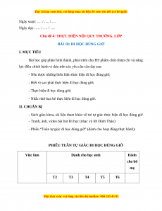 - Phiếu “Tuần tự giác đi học đúng giờ” (dành cho hoạt động thực hành):