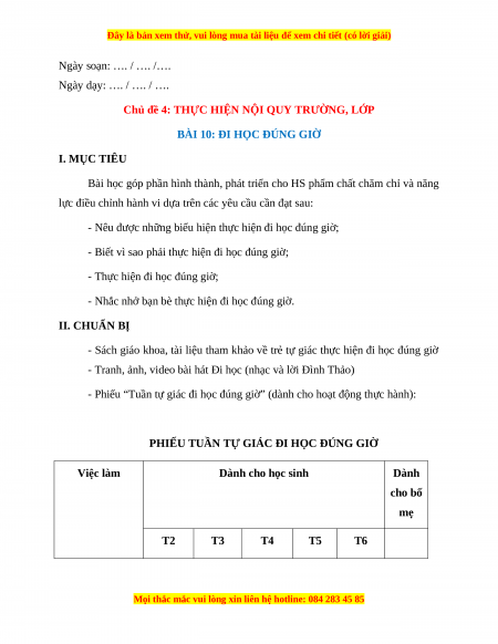 BÀI 10: ĐI HỌC ĐÚNG GIỜ I. MỤC TIÊU