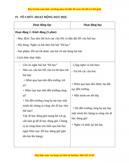 IV. TỔ CHỨC HOẠT ĐỘNG DẠY HỌC Hoạt động dạy Hoạt động học