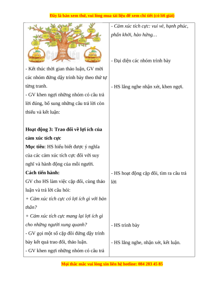 Hoạt động 3: Trao đổi về lợi ích của cảm xúc tích cực