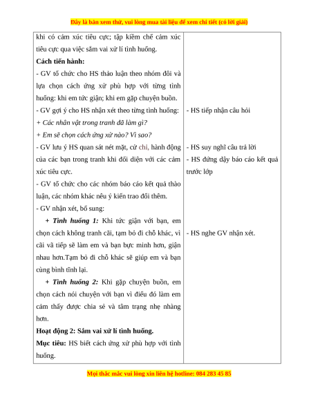 tiêu cực qua việc sắm vai xử lí tình huống.