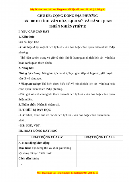 - Giới thiệu được một di tích lịch sử - văn hóa hoặc cảnh quan thiên nhiên ở địa phương.