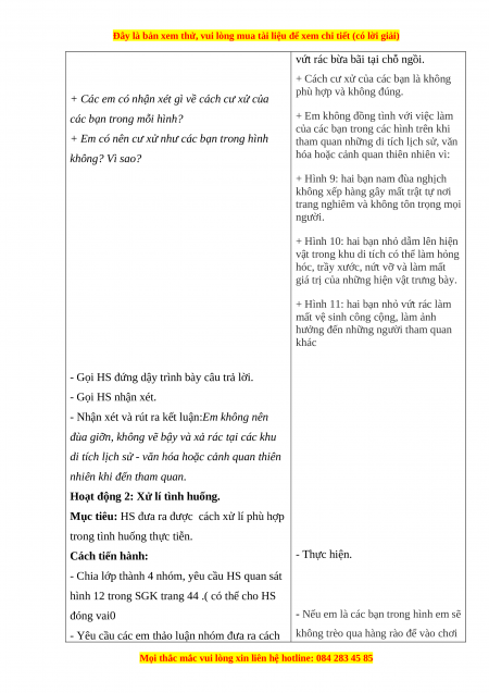 - Biết giữ vệ sinh chung khi tham quan di tích lịch sử - văn hóa hoặc cảnh quan thiên nhiên.