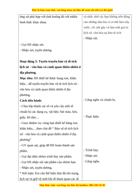 Hoạt động 3: Tuyên truyền bảo vệ di tích
