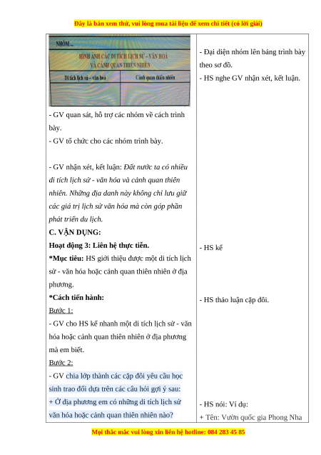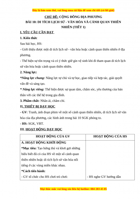 Giáo án Bài 10: Di tích lịch sử - văn hóa và cảnh quan thiên nhiên Tự nhiên và xã hội lớp 3 Chân trời sáng tạo