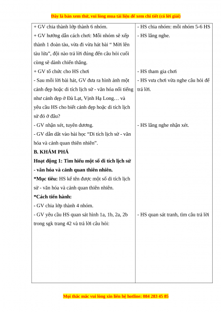 hóa và cảnh quan thiên nhiên”. B. KHÁM PHÁ