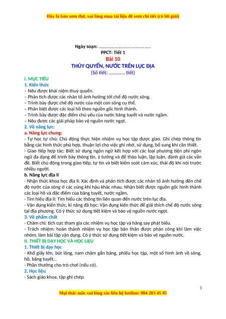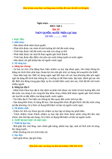 Giáo án Bài 10 Địa lí 10 Cánh diều: Thủy quyển. Nước trên lục địa