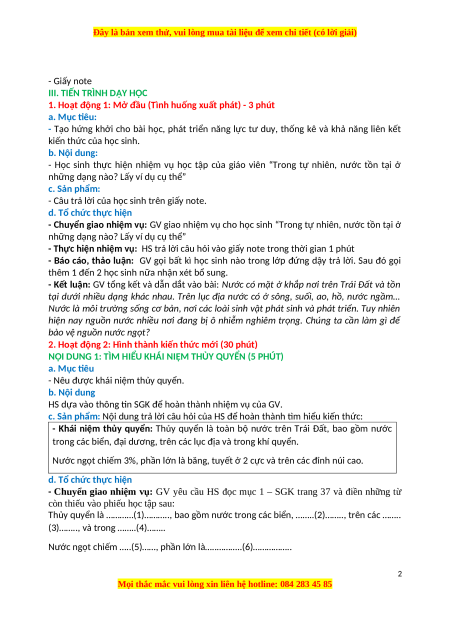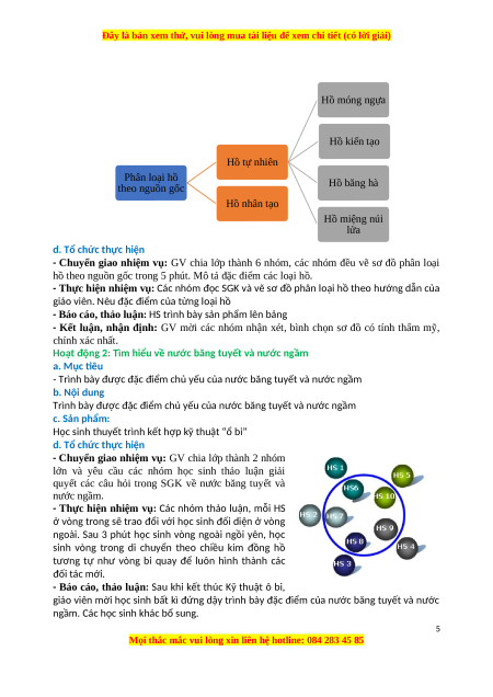 - Chuyển giao nhiệm vụ: GV giao nhiệm vụ cho học sinh “Trong tự nhiên, nước tồn tại ở