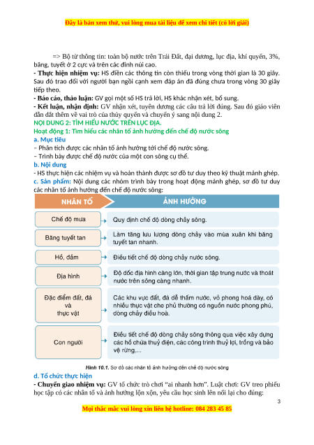 học sinh quan sát hình 10.1, hãy phân tích các nhân tố ảnh hưởng đến chế độ nước sông trong thời gian 3 phút.