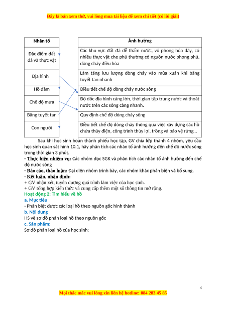 - Thực hiện nhiệm vụ: Các nhóm đọc SGK và phân tích các nhân tố ảnh hưởng đến chế độ nước sông