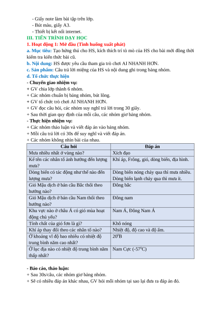 - Giải thích được một số hiện tượng thời tiết và khí hậu trong thực tế. 2. Năng lực: - Năng lực chung: