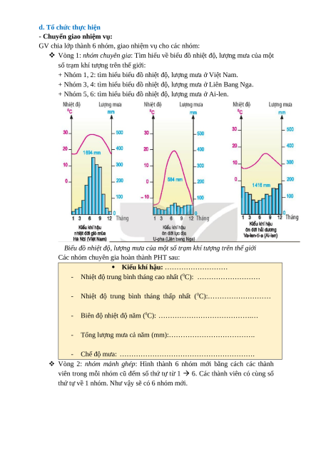 Vòng 1: nhóm chuyên gia: Tìm hiểu về biểu đồ nhiệt độ, lượng mưa của một
