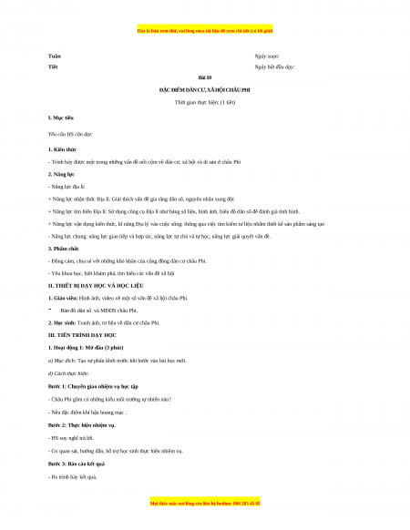 Giáo án Bài 10 Địa lí 7 Cánh diều (2024): Đặc điểm dân cư, xã hội Châu Phi