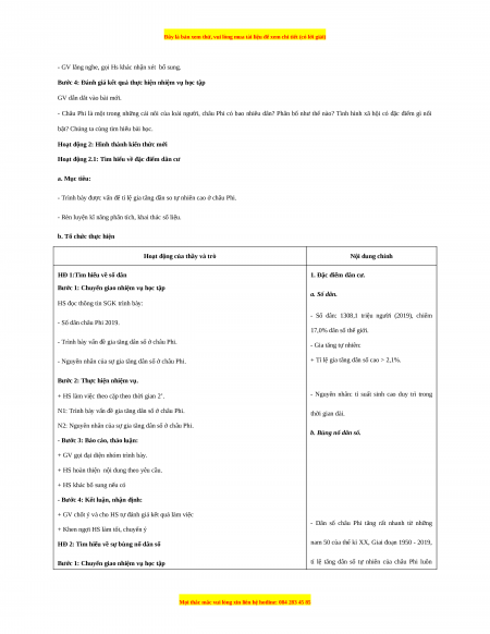 - Trình bày vấn đề gia tăng dân số ở châu Phi. - Gia tăng tự nhiên: