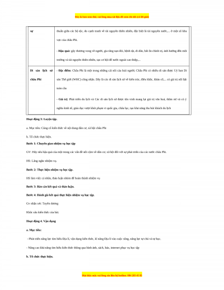 - Trình bày được một trong những vấn đề nổi cộm về dân cư, xã hội và di sản ở châu Phi 2. Năng lực - Năng lực địa lí: