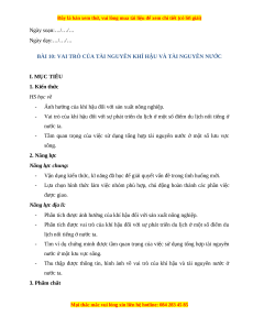 BÀI 10: VAI TRÒ CỦA TÀI NGUYÊN KHÍ HẬU VÀ TÀI NGUYÊN NƯỚC I. MỤC TIÊU 1. Kiến thức HS học về -