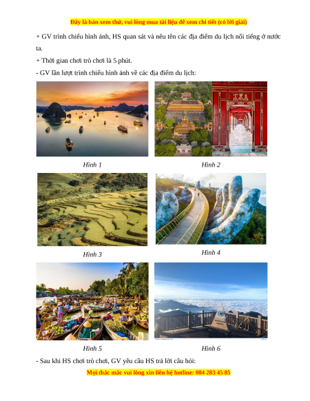 - GV lần lượt trình chiếu hình ảnh về các địa điểm du lịch: Hình 1 Hình 2 Hình 3 Hình 4 Hình 5 Hình 6