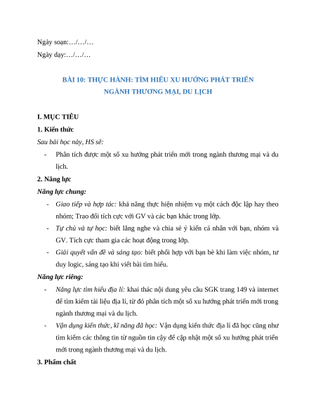 Phân tích được một số xu hướng phát triển mới trong ngành thương mại và du lịch. 2. Năng lực