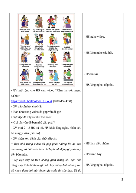 - Tự chủ và tự học: Tự nghiên cứu, tìm hiểu một số biểu hiện xâm hại và tự chủ trong