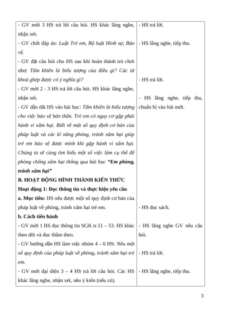 pháp luật về phòng, tránh xâm hại trẻ em. - HS đọc sách. b. Cách tiến hành