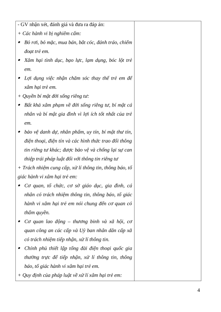 - Nêu được một số quy định cơ bản của pháp luật về phòng, tránh xâm hại trẻ em.