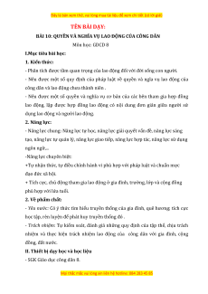 BÀI 10: QUYỀN VÀ NGHĨA VỤ LAO ĐỘNG CỦA CÔNG DÂN