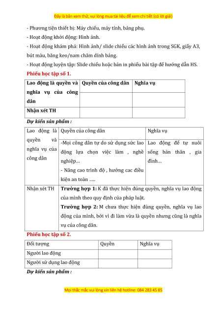 Lao động là quyền và Quyền của công dân Nghĩa vụ nghĩa vụ của công dân Nhận xét TH Dự kiến sản phẩm :