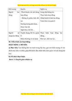 động của mình, bởi vì đi làm vừa là quyền nhưng cũng là nghĩa vụ của công dân. Phiếu học tập số 2. Đối tượng Quyền Nghĩa vụ Người lao động