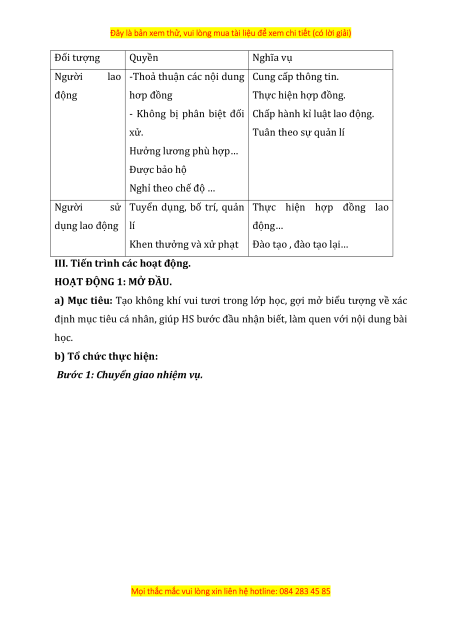 Đây là bản xem thử, vui lòng mua tài liệu để xem chi tiết (có lời giải) Đối tượng Quyền Nghĩa vụ Người