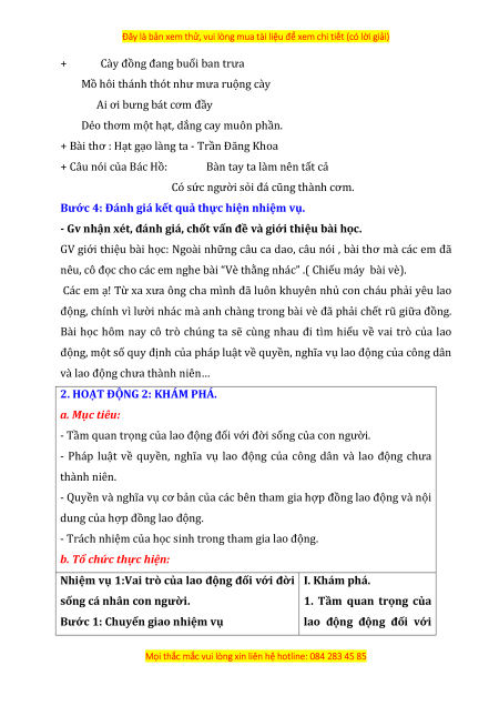 Giáo án Bài 10 GDCD 8 Cánh diều: Quyền và nghĩa vụ lao động của công dân