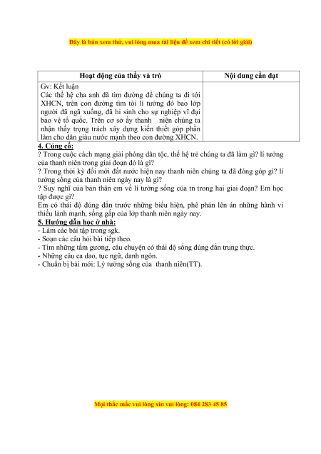 - Chuẩn bị bài mới: Lý tưởng sống của thanh niên(TT).