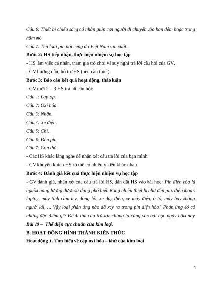 Hoạt động 1. Tìm hiểu về cặp oxi hóa – khử của kim loại 4